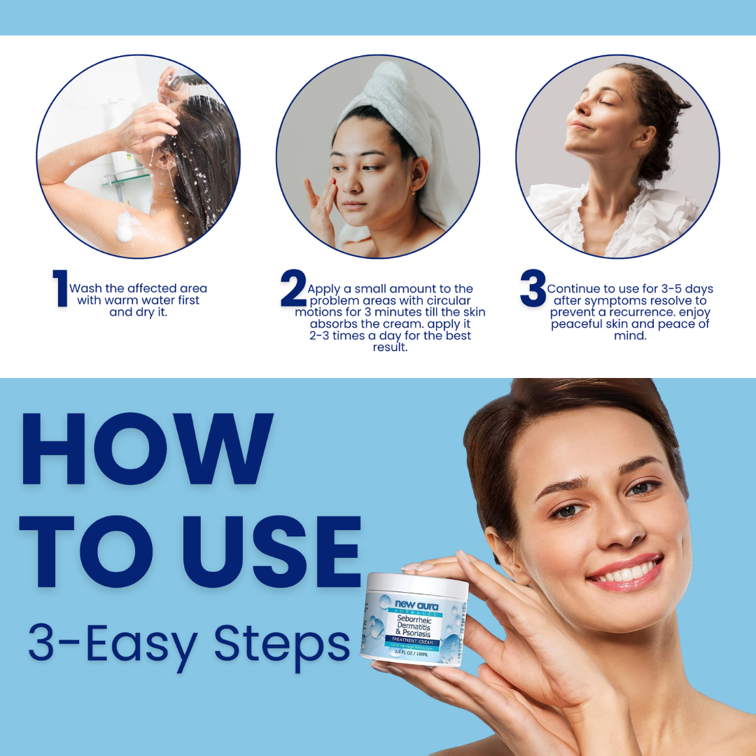 2. Scoop a small amount of New Aura cream and massage it in for 2–3 minutes using circular motions.