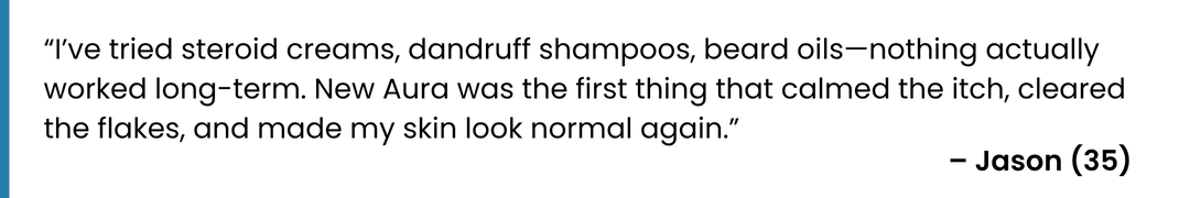 While dermatologists are handing out temporary steroid creams & shampoos. Beard brands sell oils that literally feed the very fungus causing your issues, meanwhile New Aura fights back with real science and a fungus-targeted formula that actually works.